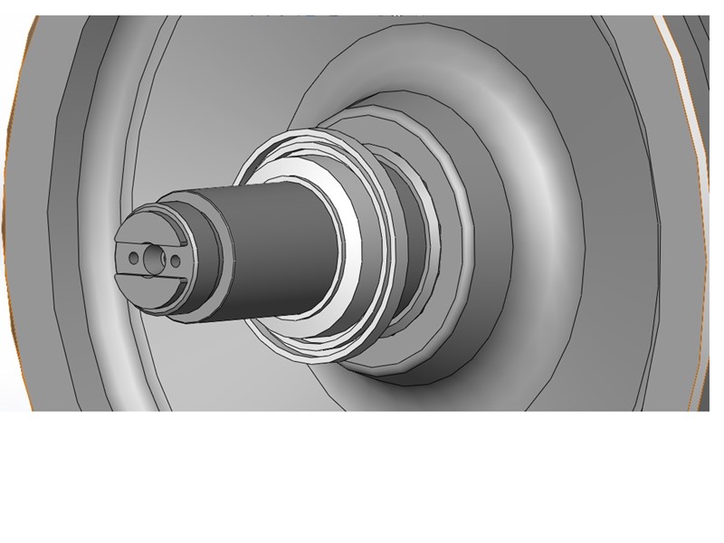 Торцевое крепление В колёсной паре РУ1Ш-950 крепление подшипников на шейке оси выполнено при помощи шайбы (буква Ш означает "шайба"). 2 - стопорная шайба