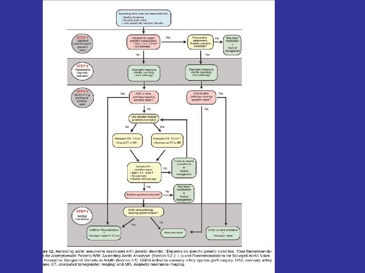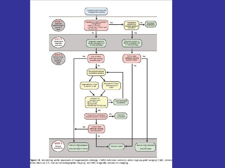 Step 3 Definite management dissection involving the ascending aorta ongoing medical Tx Close hemodynamic monitor Maintain SBP < 120 mm. Hg Complication requiring Operative or Intervational management Malperfusion syndrome Progression of dissection Aneurysm expansion Uncontrolled hypertension Step 4 Yes No Operative or Intervational management Yes ongoing medical Tx Close hemodynamic monitor Maintain SBP < 120 mm. Hg Complication requiring Operative or Intervational management Malperfusion syndrome Progression of dissection Aneurysm expansion Uncontrolled hypertension No Transition to oral medicine out patient disease surveillance imagine