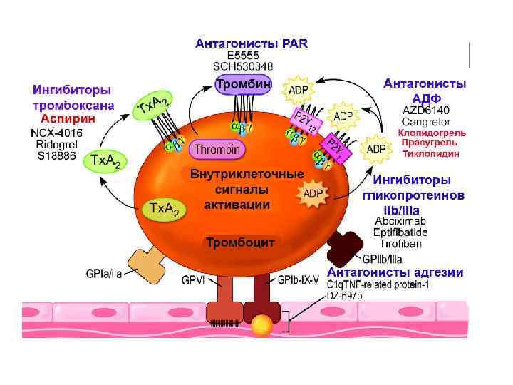 Показания к применению дезагрегантов Показания в кардиологии: • • • Острый инфаркт миокарда Острый коронарный синдром Стабильная стенокардия Нестабильная стенокардия / острый инфаркт миокарда без подъема Q Ангиопластика коронаротромбоза Чрезкожное стентирование коронарных артерий Мерцательная аритмия* Аортокоронарное шунтирование Некоторые пациенты с патологией клапанов сердца Куликов А. В. Ferrandis R. , Llau J. V. , Mugarra A. Perioperative Management of Antiplatelet-Drugs in Cardiac Surgery Curr Cardiol Rev. 2009 May; 5(2): 125– 132.