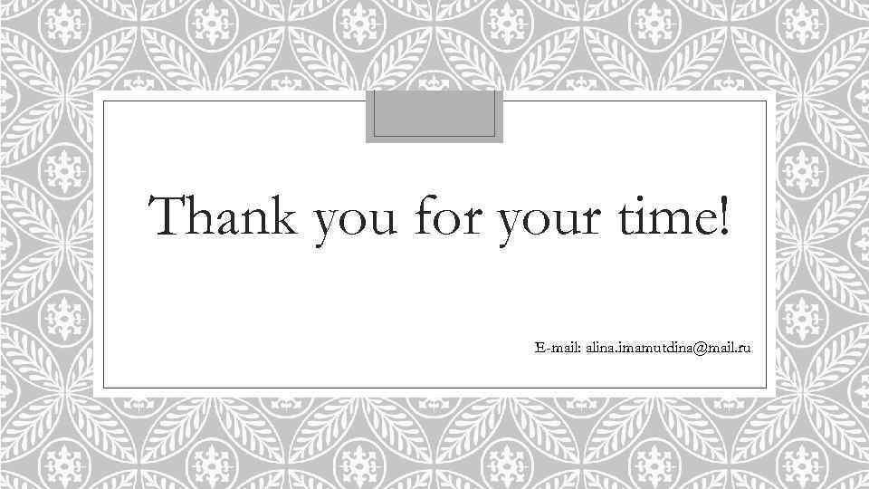 Thank you for your time! E-mail: alina. imamutdina@mail. ru
