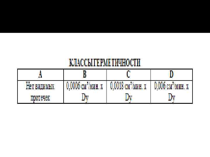 Допустимые протечки среды через затвор запорной арматуры определяются классом герметичности изделия, определяемым его функциональным назначением. Нормы герметичности запорной арматуры в настоящее время определяются ГОСТ 954493 [15], согласно которому установлены четыре класса герметичности. Максимально допустимые протечки для каждого класса при испытаниях водой приведены ниже.