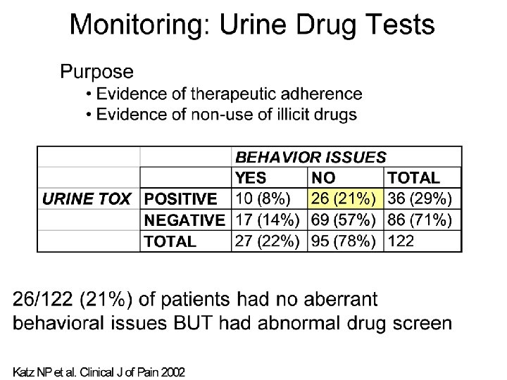 Monitoring, Monitoring… “Universal Precautions” • • • Contracts/Agreement form Drug screening Prescribe small quantities Frequent visits Single pharmacy Pill counts FSMB Guidelines 2004 www. fsmb. org Gourlay DL, Heit HA. Pain Medicine 2005