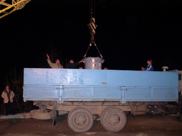 S. Zlokazov, V. Gavrin, A. Korenkova, Z. Shakirov, V. Barsanov (left to right) with 37 Ar source before its delivery from the IRM