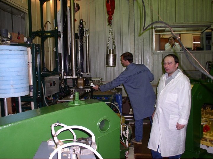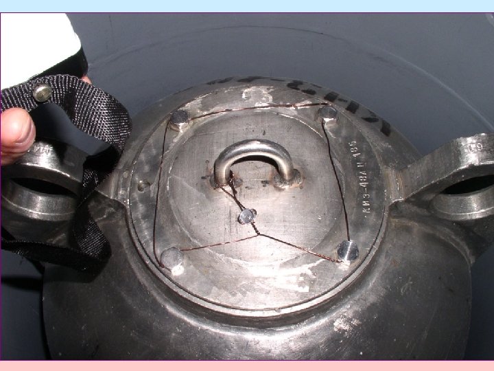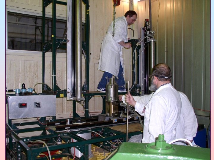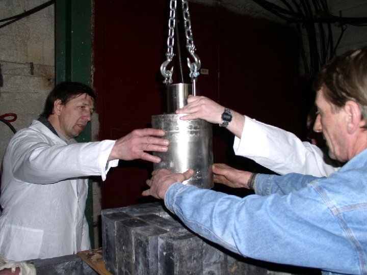 A. Measurements at Zarechny (3) In the third method, the heat output of the source was measured in a massive calorimeter specially built for this purpose. The calorimeter was calibrated using electrical heaters of known power and thermocouple EMF over the range of (6 -8) W (the expected source power) was found to have the constant value 0. 1019± 0. 0002 W/m. V. Stabilization of the calorimeter with the source required only 3 h and the measured thermocouple EMF was 65. 9 m. V at 22: 00 on 28 April 2004. Applying a decay factor of 0. 9740 gives a power of 6. 54± 0. 04 W at our reference time. Using the conversion factor gives the source activity at this time as 405± 4 k. Ci. The error estimate includes the calibration uncertainty, the errors in the calorimeter measuring circuits, and the uncertainties in both decay energy and 37 Ar half-life. Summary of measurements at Zarechny Measurement method Volume of gas Mass of gas Calorimetry Activity (k. Ci 37 Ar at 04: 00 on 30 April 2004) 409 ± 6 412 ± 4 405 ± 4 The weighted average value is 409 ± 3 k. Ci