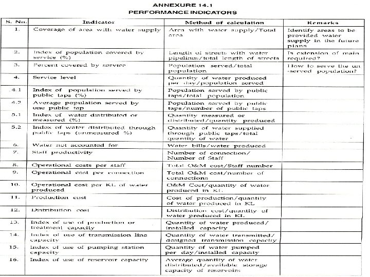 SYSTEM MANAGEMENT • Management information System v Management levels : Senior, Middle and Operational Management • Management indicators v Performance indicators and Bench marking v Safety and Security in maintenance of plant and accessories v Disaster mitigation management, Drought mitigation management • Financial information System v Such as demand Collection and Balance, budget process, O & M experiences and surplus deficit etc.