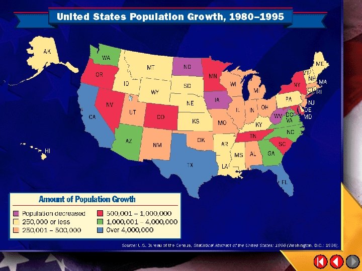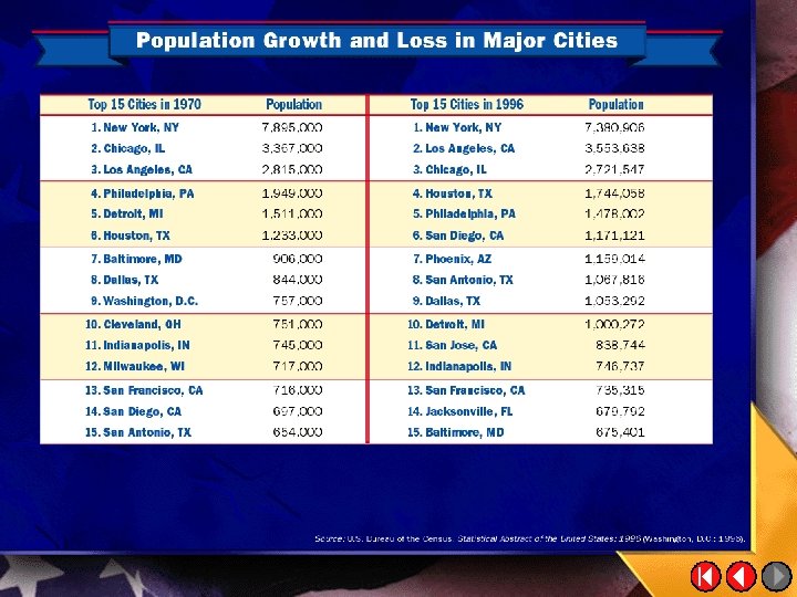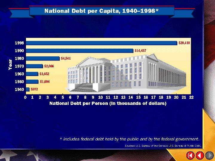 United States Population Growth, 1980– 1995 Population Growth and Loss in Major Cities United States Foreign Trade, 1980– 1996 Crime and the Justice System Bills Introduced, Passed, and Enacted by Congress, 1961– 1998 Federal Revenue by Source, 1999 Federal Expenditures by Category, 1999 Federal Government Revenues and Expenditures, 1960– 1998 Gross Federal Debt, 1960– 1998 National Debt per Capita, 1940– 1998 Executive Department Civilian Employees State Revenues and Expenditures State and Local Expenditures for Education