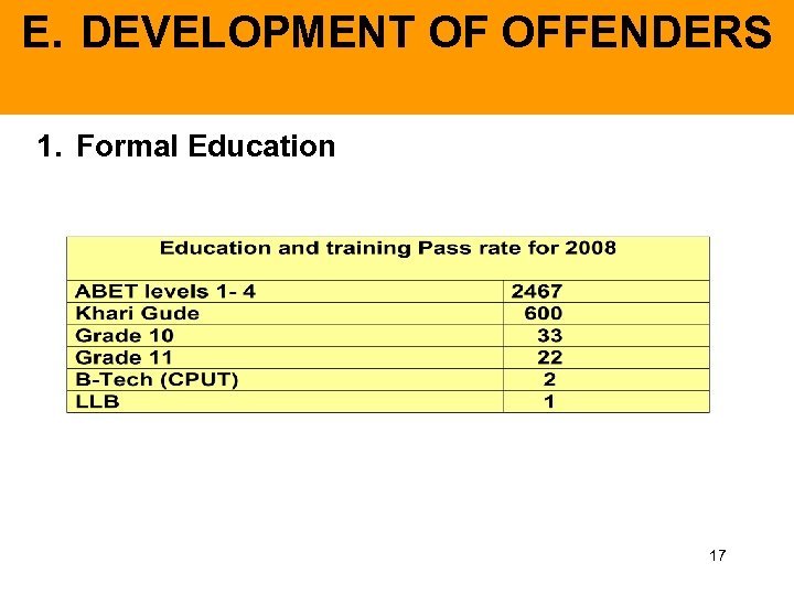 E. DEVELOPMENT OF OFFENDERS 1. Formal Education 17