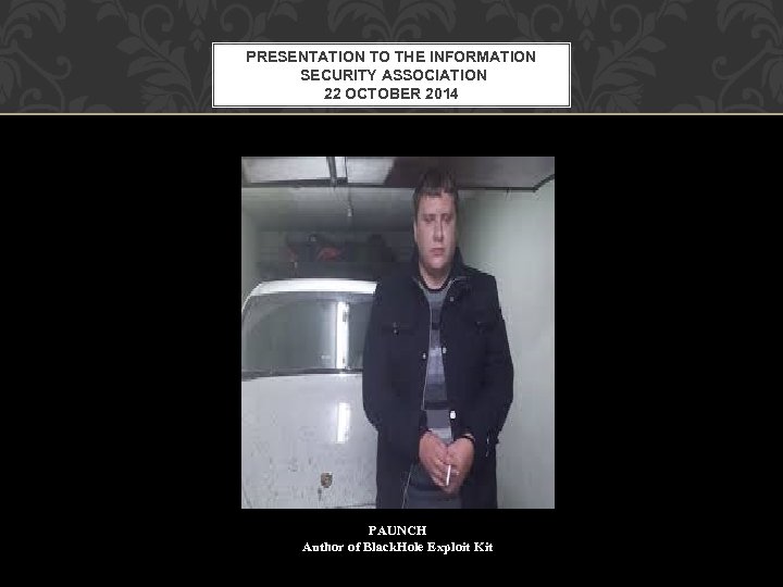 PRESENTATION TO THE INFORMATION SECURITY ASSOCIATION 22 OCTOBER 2014 PAUNCH Author of Black. Hole Exploit Kit