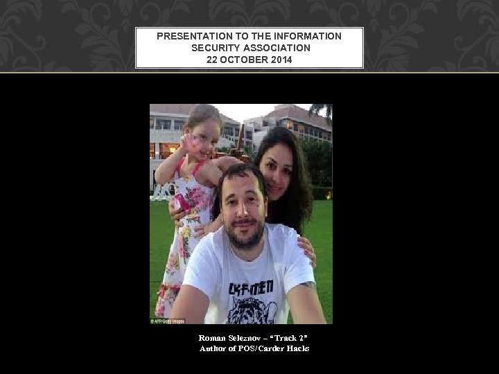 PRESENTATION TO THE INFORMATION SECURITY ASSOCIATION 22 OCTOBER 2014 Roman Seleznov – “Track 2” Author of POS/Carder Hacks