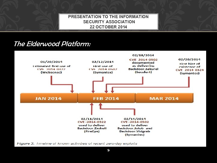 PRESENTATION TO THE INFORMATION SECURITY ASSOCIATION 22 OCTOBER 2014 The Elderwood Platform: 9