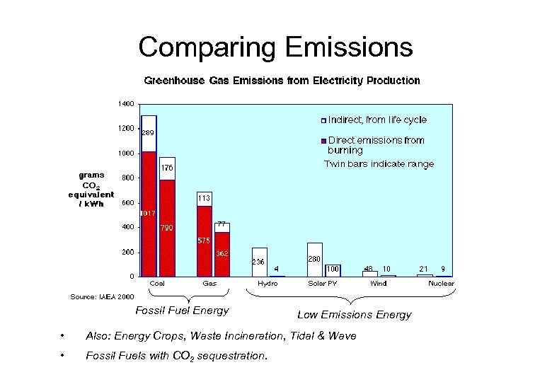 Comparing Emissions Fossil Fuel Energy Low Emissions Energy • Also: Energy Crops, Waste Incineration, Tidal & Wave • Fossil Fuels with CO 2 sequestration.