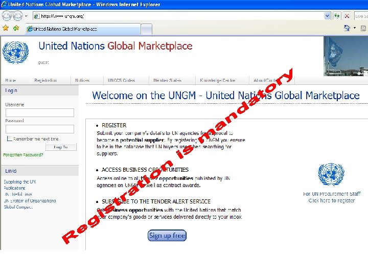 Registration and Post registration process § Registration with the UNGM § Continue UN market research § Thorough information about procurement § Obtain systematic / regular information about current procurement activities / opportunities § Keep yourself up-to-date and update regularly your vendor profile