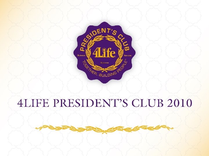 RECOGNITION THAT GOES ABOVE AND BEYOND • 4 Life International Convention stage time • Personalized award • President’s Club pin • $200 Convention cash card • VIP convention seating • DVD of award presentation • Summit and website coverage • 18 -months of meeting recognition