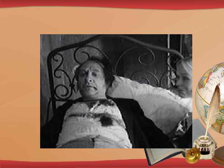 Семён Захарович Мармеладов • Мармеладов Семен Захарович. Этот образ связан с одной из ведущих тем в творчестве Достоевского – темой нищеты и унижения, в которых погибает достойный человек. • Мармеладов - титулярный советник, отец Сонечки. «Это был человек лет уже за 50, … с отекшим от постоянного пьянства, желтым, даже зеленоватым лицом и с припухшими веками, из-за которых сияли крошечные, как щелочки, но одушевленные красноватые глазки. Но что-то в нем было очень странное; во взгляде его светилась как будто даже восторженность, - пожалуй, был и смысл, и ум, - но в то же время мелькало как будто безумие» . Мармеладов лишился места в связи с сокращением кадров и с тех пор начал пить. Историю жизни этого героя мы узнаем из его собственных уст. Он рассказал Раскольникову, что пропил вещи своей второй жены, Катерины Ивановны. Из-за пьянства Мармеладова и страшной нищеты их семьи Сонечка пошла на панель. Мармеладов сознавал всю свою ничтожность и глубоко раскаивался во всех своих грехах. Но в то же время он не имел сил что-то изменить. Свою слабость и свои пороки герой представлял как драму вселенского масштаба. Часто он вел себя очень театрально. «Жалеть! Зачем меня жалеть! – вдруг возопил Мармеладов, вставая с протянутою вперед рукой, в решительном вдохновении, как будто только и ждал этих слов…» В конце концов Мармеладов погиб, попав пьяным под копыта лошадей.