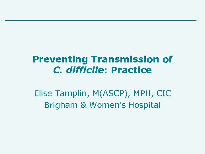 Preventing Transmission of C. difficile: Practice Elise Tamplin, M(ASCP), MPH, CIC Brigham & Women’s Hospital