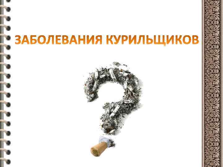 • ЕСЛИ ЧЕЛОВЕК НАЧАЛ КУРИТЬ В 15 ЛЕТ, ПРОДОЛЖИТЕЛЬНОСТЬ ЕГО ЖИЗНИ УМЕНЬШАЕТСЯ БОЛЕЕ ЧЕМ НА 8 ЛЕТ. • ИЗ КАЖДЫХ 100 ЧЕЛОВЕК , УМЕРШИХ ОТ ХРОНИЧЕСКИХ ЗАБОЛЕВАНИЙ ЛЕГКИХ, 75 КУРИЛИ. • ИЗ КАЖДЫХ 100 ЧЕЛОВЕК, УМЕРШИХ ОТ ИШЕМИЧЕСКОЙ БОЛЕЗНИ СЕРДЦА, 25 КУРИЛИ.