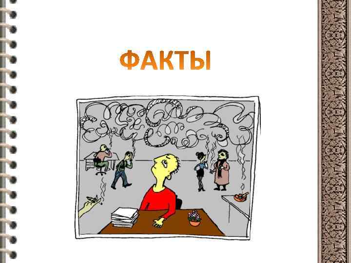 Курящий наносит большой вред не только своему здоровью, но и здоровью окружающих. Человек, который находится в течение часа в сильно накуренном помещении, получает такую же дозу ядовитых веществ, как и выкуривший четыре сигареты. Пассивный курильщик вдыхает 70 % гадостей.