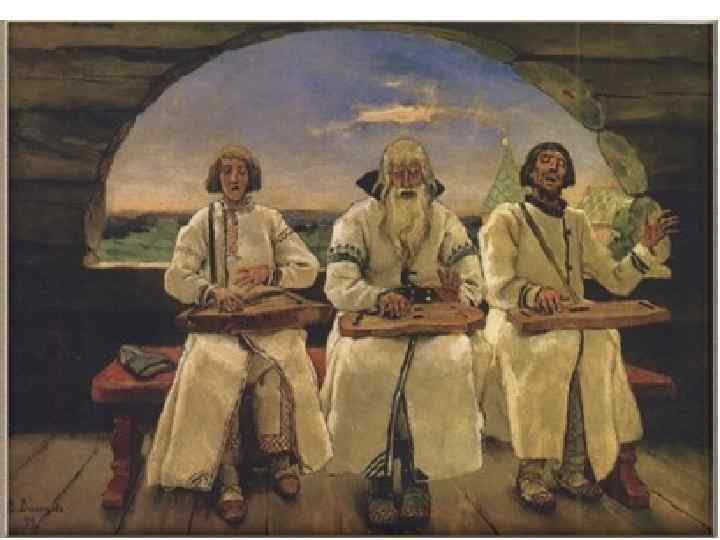 7. Музыка На Руси получили развитие народная (языческая) музыка и христианское богослужебное пение. Песенный фольклор сопровождался игрой на дудках, бубнах, гуслях. Пиршества князей, как правило, сопровождались плясками, песнями, игрой на музыкальных инструментах. Православная религия не знает игры на музыкальных инструментах.