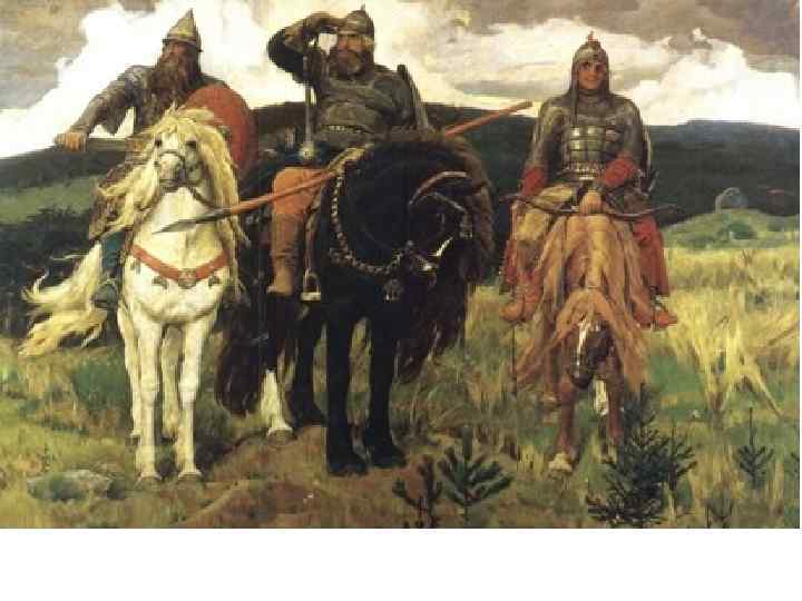 2. Былины - это поэтические сказания о прошлом, в которых прославлялись подвиги русских богатырей. ‒ Илья Муромец ‒ Добрыня Никитич ‒ Алёша Попович ‒ Микула Селянинович Русские былины проникнуты идеей освобождения своей земли, её защиты от врагов.