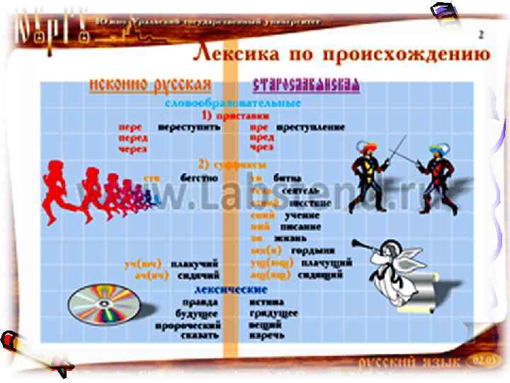 Иногда заимствуется не целое слово, а лишь его часть, морфема. • Приставки: а-, архи, -дез (аполитичный, архиважно, дезинфекция). • Суффиксы: –ист, -ер (очеркист, ухажер). • Корни: аква (лат. ) – вода, • гидро (греч. ) – вода, • декор (франц. ) – украшение, • терра (лат. ) – земля • микро (греч. ) – малый • теле (греч. ) – далеко • авто (греч. ) – сам Упр. 94.