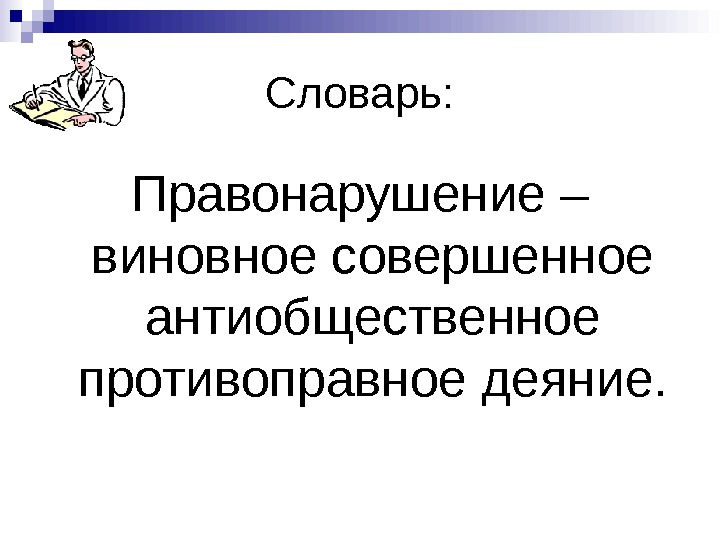 Словарь: Правонарушение – виновное совершенное антиобщественное противоправное деяние.