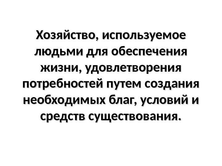 Хозяйство, используемое людьми для обеспечения жизни, удовлетворения потребностей путем создания необходимых благ, условий и средств существования.