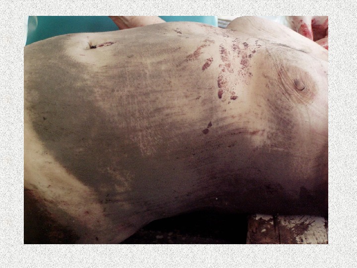 Повреждения 3 фазы • Кровоподтеки, ссадины, ушибленные раны, переломы ребер, позвоночника, черепа, конечностей, разрывы одежды, формирование наложений на одежде • Формирование признаков сотрясения тела