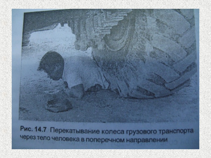 Переезд • 1 фаза – первичный контакт • 2 фаза – въезд (радиус колеса должен быть больше диаметра части тела, которая переезжается) • 3 фаза – съезд (иногда с отпрыгиванием колеса)