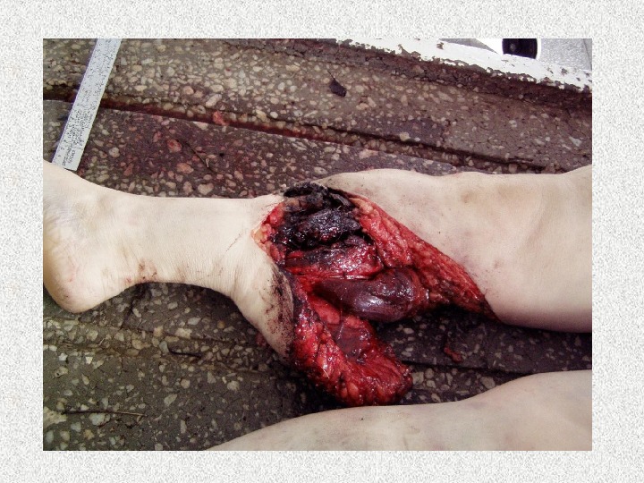 Повреждения 4 фазы • Ссадины, рваные раны, разрывы одежды, формирование наложений на одежде и теле