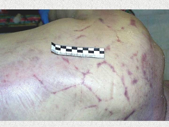 ПАДЕНИЕ НА ПОВЕРХНОСТЬ • Самопроизвольные: однократные и неоднократные; с ускорением • Смертельные и несмертельные • На лестничных маршах • По поверхности соударения: ничком (передней), навзничь (задней), боком • Повреждения располагаются на стороне соударения: кровоподтеки, ссадины, ушибленные раны, переломы, ушибы внутренних органов. Наложения на одежде.