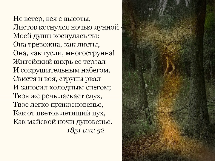 Любовная лирика уравновешена по тону, но почти всегда пронизана грустью: любовь неотрывна от условий существования любящих, от временных состояний духа. «Приливы любви и отливы» — одно из появлений большей или меньшей полноты и насыщенности жизни. Внутреннее состояние поэта , его борьба с невзгодами и судьбой часто соотносятся с состоянием обновляющейся природы. Минорный тон потесняется более светлым и жизнерадостным.