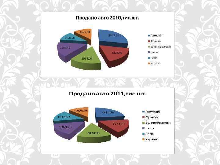 СИТУАЦІЙНИЙ АНАЛІЗ РИНКУ Для того , щоб визначити стратегічні напрямки розвитку компанії «COBRA» , ми провели аналіз ринку на якому вона функціонує. Ринок екологічно чистих автомобілів знаходиться на стадії розвиту. Обсягу продажу даного товару ще незначні, але в останні роки збільшились. Порівняно з періодом кризи, обсяги продажу автомобілі зростають, але до кризових показників ще далеко. З графіка наведеного нижче можна зробити такі висновки: Порівняно з 2010 роком обсяги продажу автомобілів помітно скоротились в Германії, Франції та Італії. А В Великобританії, Росії та Україні показники навпаки збільшились. За даними інформаційно-аналітичної групи AUTO-Consulting, згідно зі статистичними даними, в загальноєвропейському заліку Україна посідає 15 -е місце за кількістю проданих автомобілів. . Ще сумніше виглядає порівняння з 2008 роком, коли український авторинок займав 7 -у позицію в Європі