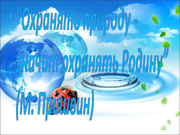 Цель: формирование ответственного отношения к природе. Задачи: Способствовать воспитанию любви к родной природе; Познакомить с правилами поведения на природе; Пополнение знаний учащихся по экологии.