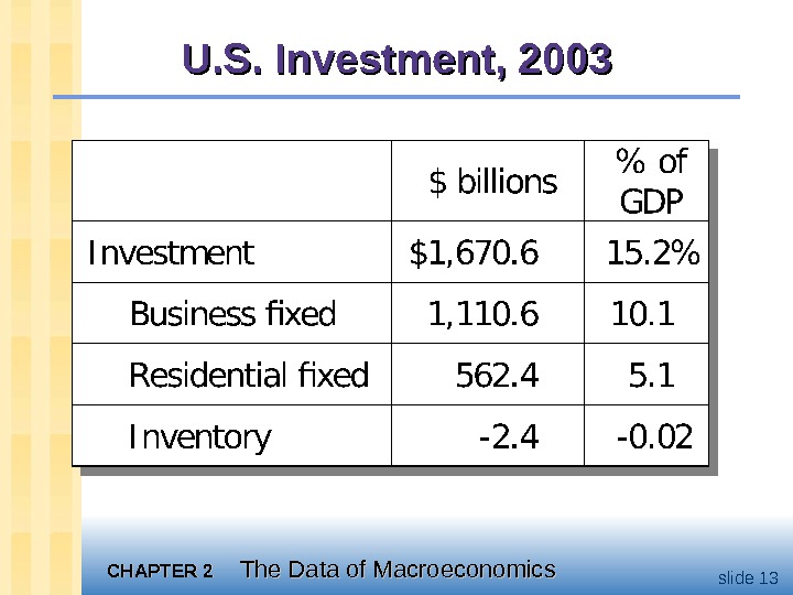 CHAPTER 2 The Data of Macroeconomics slide 13 U. S. Investment,