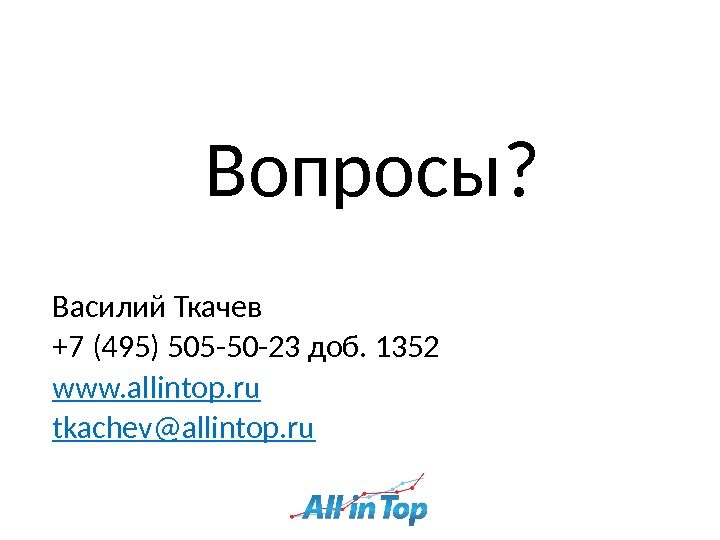 Вопросы ? Василий Ткачев +7 (495) 505 -50 -23 доб. 1352 www. allintop. ru tkachev@allintop. ru