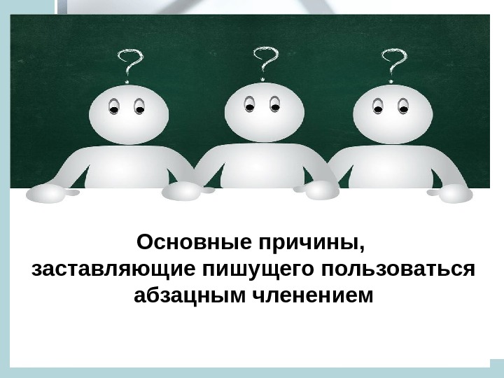Основные причины, заставляющие пишущего пользоваться абзацным членением