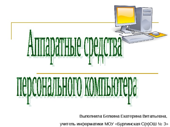 Выполнила Белкина Екатерина Витальевна, учитель информатики МОУ «Бурлинская С(п)ОШ № 3»
