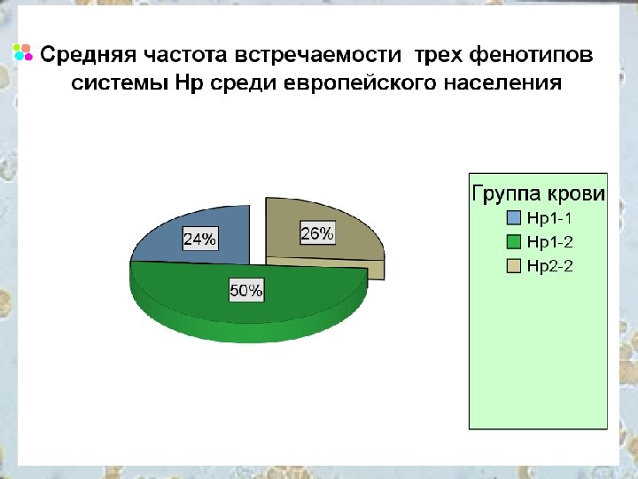 по системе Нр Система Нр 80, 00% 80% 70, 00% 60, 00% 50, 00% 40, 00% 30, 00% 20, 00% 14% 26% 17, 14% Частота встречаемости среди европейского населения 0, 00% Нр1 -1 2, 86% Частота встречаемости по выборке Нр1 -2 Нр2 -2 Нр1 -1 Частота встречаемости по выбоке Частота встречаемости среди европейского населения Нр1 -2 Нр2 -2 17, 14% 80% 2, 86% 14% 50% 26% Частота встречаемости группы Нр1 -1 на 3, 14% выше по сравнению со средней частотой встречаемости у европейского населения; группы Нр1 -2 соответственно на 30% выше; группа Нр 2 -2 на 23, 14% ниже.