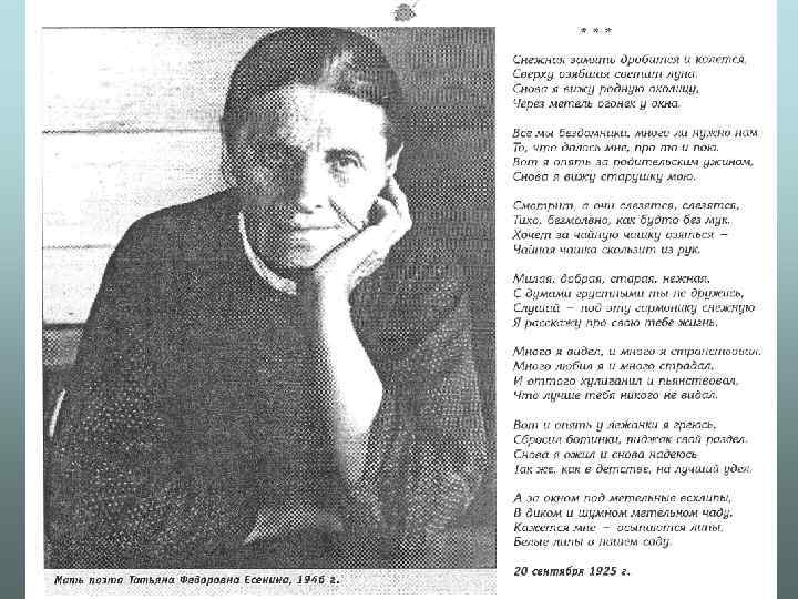 Посвящение жизни и творчеству С. А. Есенина Быть поэтом - это значит то же, Если правды жизни не нарушить, Рубцевать себя по нежной коже, Кровью чувств ласкать чужие души.