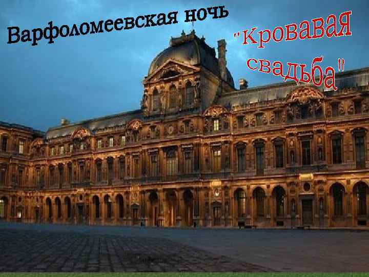 Р: Карл IХ • протестантизм запрещён • Генрих перешёл в католичество убито 30 тыс. человек • войны продолжались