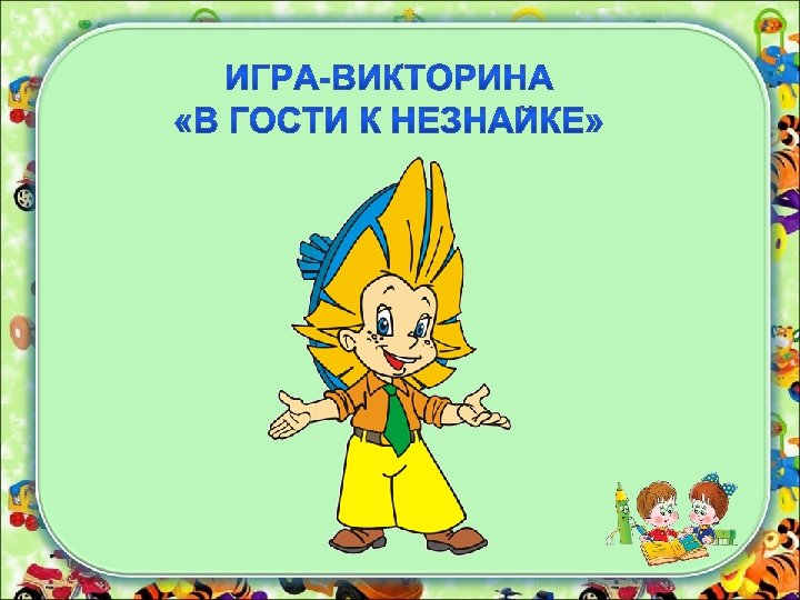 1 н е з н а к а й к 2 а в о с ь 3 г у с л я 4 т о р о п ы ж 5 ц в е т и а к к а Этот герой Коротышка озорной, Один из двухжил на улице которого братьев, про Этот герой управлял Замечательный Одуванчиков. яркой шляпе голубой. В Звали его Незнайка сочинил стихи: Пудиком. газированным псевдоним музыкант цветочного А как звучит. Неумейка и зазнайка, и его автомобилем У ……. . подушкой всегдазовут его…. города. (вымышленное имя)? И торопился. Лежит сладкая ватрушка.