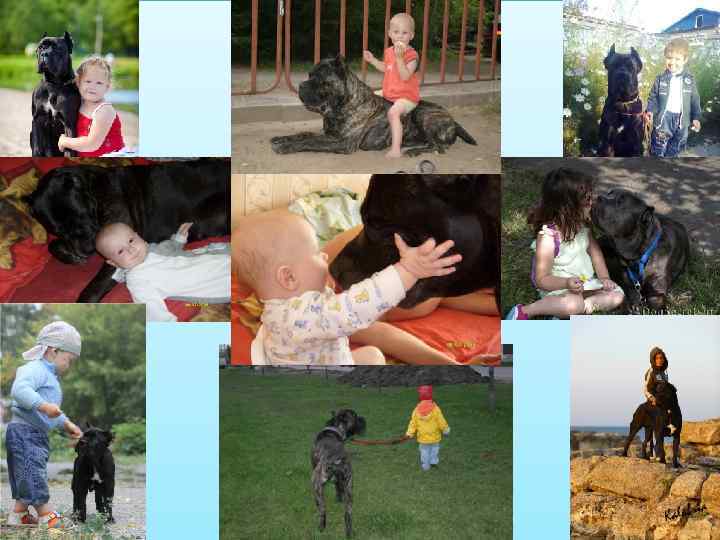 Кане корсо и дети Особенно терпеливо и заботливо собаки этой породы относятся к детям. Корсо никогда не обидит даже чужого малыша, а "своих" ребятишек будет старательно опекать, позволять им любые вольности и яростно защищать от посторонних посягательств. Поэтому корса можно заводить, имея в семье детей любого возраста, — он прекрасно с ними поладит. Любовь и нежность собак этой породы к детям безгранична. Корса четко понимает, что маленькое существо нуждается в ее защите больше, чем взрослый человек и постоянно держит малыша в поле своего зрения. При этом, обученная собака беспрекословно выполняет команды маленьких хозяев, также как и взрослых людей.