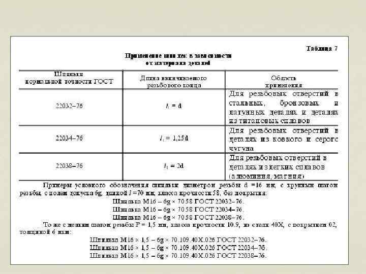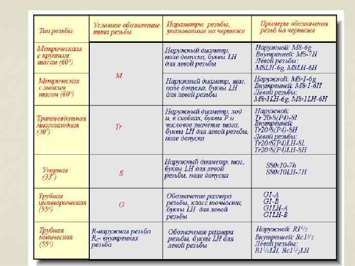 Изображение резьбы и резьбовых соединений