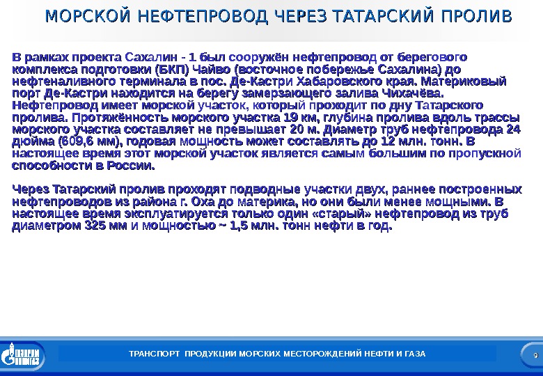 1010 Заголовок презентации 1010 МОРСКОЙ НЕФТЕПРОВОД ЧЕРЕЗ ТАТАРСКИЙ ПРОЛИВ ТРАНСПОРТ ПРОДУКЦИИ МОРСКИХ МЕСТОРОЖДЕНИЙ НЕФТИ И ГАЗА