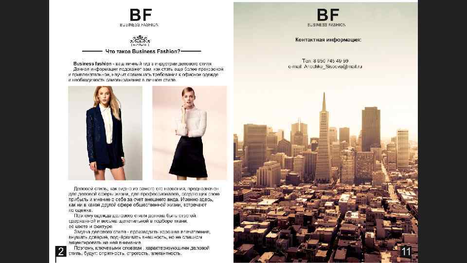 Презентация на тему: Брошюра для магазина стильной деловой одежды «Business Fashion» BF Выполнила: студентка 141 группы Сысоева Анна