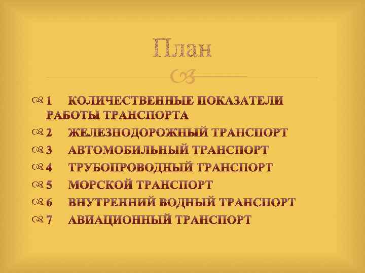 КОЛИЧЕСТВЕННЫЕ ПОКАЗАТЕЛИ ТРАНСПОРТНОЙ СИСТЕМЫ МИРА: ПРОТЯЖЕННОСТЬ ПУТЕЙ СООБЩЕНИЯ (в тыс. км) Железные дороги (1050) Трубопроводы (2250) Внутренние водные пути (550) Воздушные пути(11500) Автомобильные дороги (32500) 0 5000 10000 15000 20000 25000 30000 35000