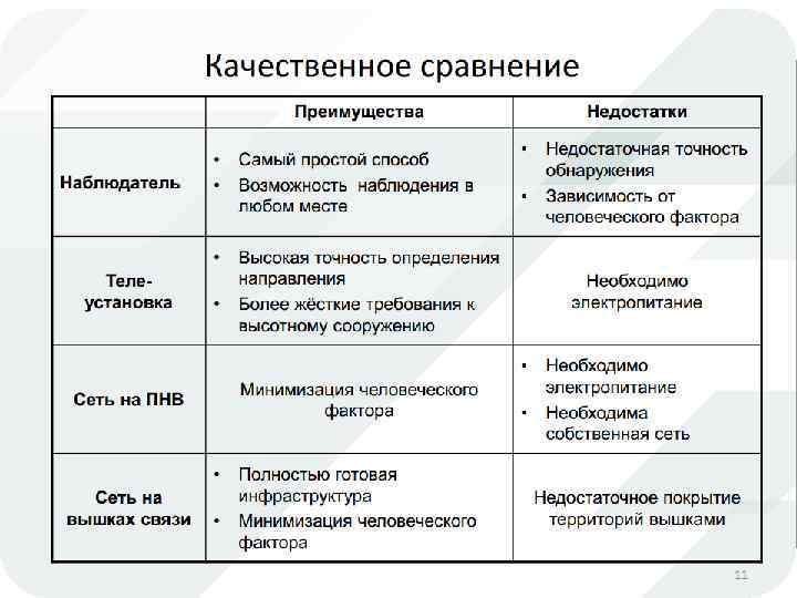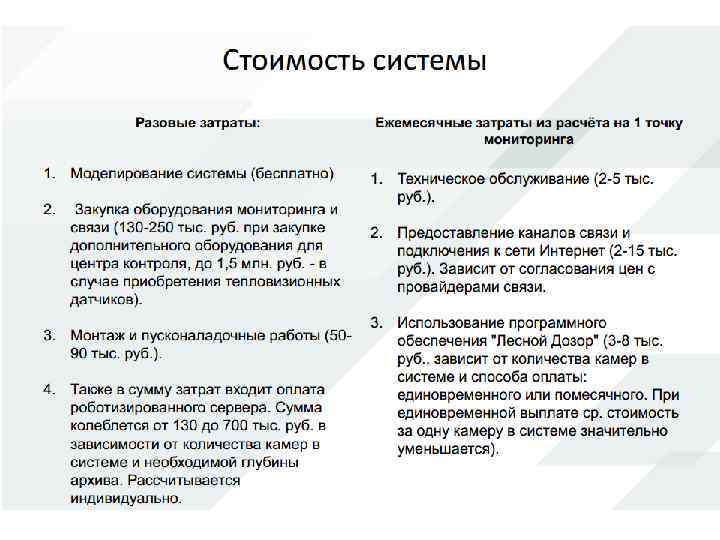 Существенным недостатком является высокая стоимость вышки, т. к. вышка должна быть специально оборудована для постоянного нахождения на ней человека. Для примера стоимость вышки предназначенной только для размещения оборудования составляет 11000 руб. за метр высоты, стоимость пожарной вышки составляет более 50000 руб. за метр. По этой причине пожарные вышки не обновлялись уже более 15 -20 лет, и большинство из них уже не могут быть использованы изза аварийного технического состояния. Не стоит забывать и о немаловажном способе обнаружения пожара при помощи местного населения, что при настоящем развитии мобильной связи достаточно часто может быть эффективно.