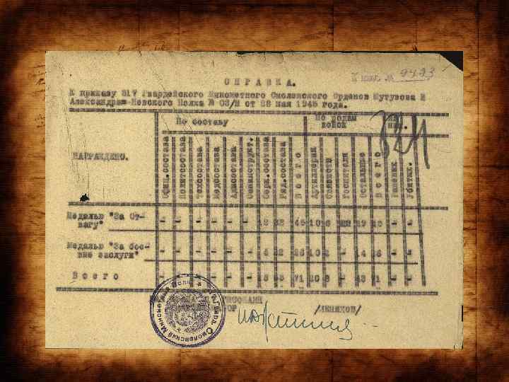 Награды: Орден Отечественной войны II степени . Егорочкин Александр Антонович 27 марта 1927 г. -20 декабря 2009 г. Родился: Горьковская обл. Починковский район. п. Старина Мой прадедушка по маминой линии. • 12 декабря 1944 года в возрасте • 17 лет призван добровольцем. • Декабрь 1944 г. – март 1945 г. – стрелок 25 – ой стрелковой бригады внутренних войск НКВД СССР в батальоне 223 ОСБ в г. Саранске Мордовской АССР. • Март 1945 г. – январь 1946 г. стрелок 25 – ой стрелковой бригады в батальоне 221 ОСБ в г Пенза. • 01. 1946 г. - 07. 1948 г. участвовал в боевых операциях по ликвидации националистического подполья в Западных областях Украины. http: //podvignaroda. mil. ru/? #id=1511722094&tab=nav. Detail. Man. Ubil Сайт «Подвиг народа»