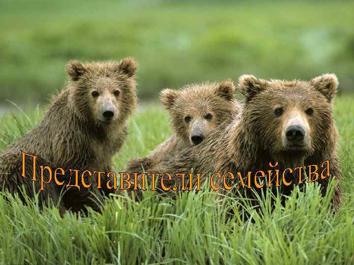 Содержание: 1) Систематическое положение; n 2) Происхождение и классификация; n 3) Внешнее строение; n 4) Внутренние строение; n 5) Представители семейства; - бурый медведь - белый медведь - гималайский медведь - гризли - губач n 6) Размножение; n 7) Значение для человека; n 8) Среда обитания; n
