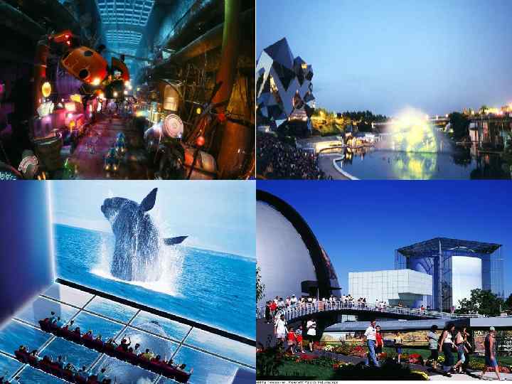Фютюроскоп Французский парк Futuroscope предлагает посетителям погрузиться в красочный виртуальный мир компьютерных игр и трехмерного кино. В нём собраны все новейшие достижения аудиовизуальных, кинематографических и мультимедийных технологий. Благодаря тому, что каждый павильон оснащён оригинальным набором спецэффектов, посетители имеют возможность ощутить происходящие события как реальные.